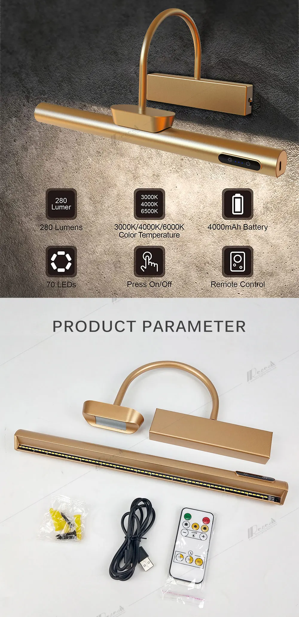 USB Led Wall Lamp Modern Gold Bathroom Mirror Light